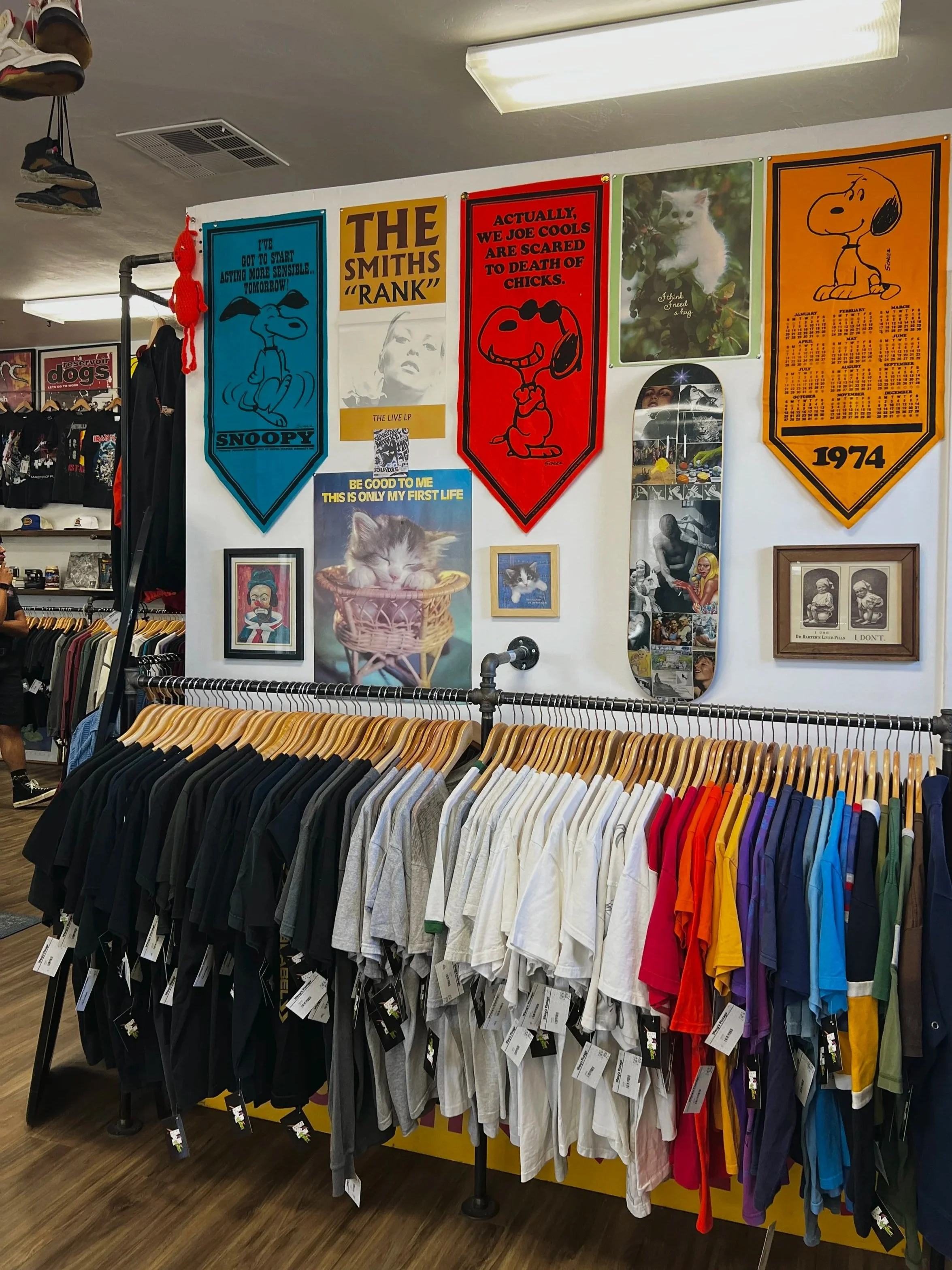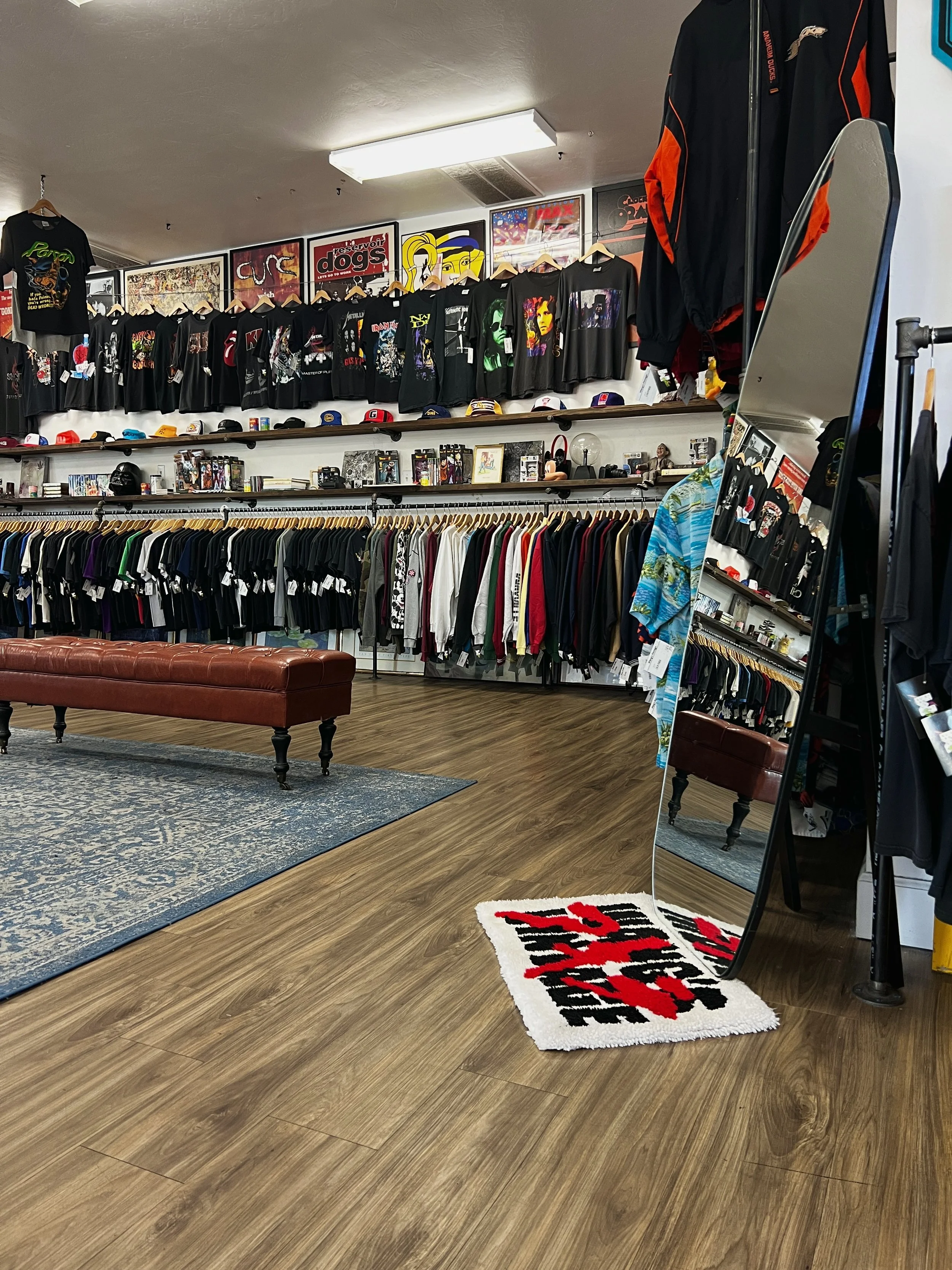 We specialize in vintage graphic t-shirts (band/concert, pop-culture, biker, skateboarding, hip-hop, and so much more). While we have our love for graphic tees, we never shy away from checking something new out; call us or send us a DM on Instagram if you have any questions!